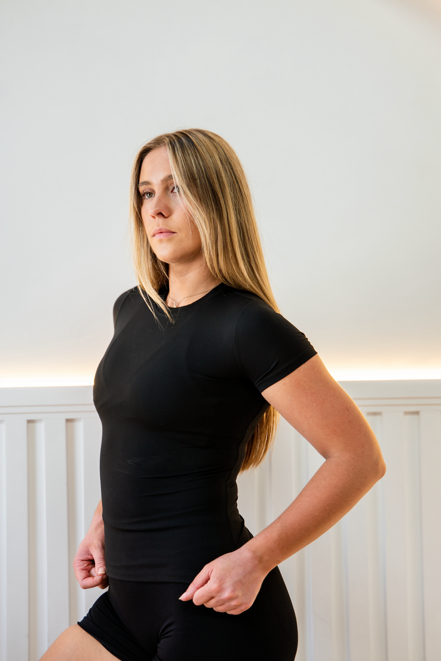 Sculpted to flatter, soft enough to live in, our 'Sculpt Tee' is where contour meets comfort! Made from our signature buttery soft, stretch-infused fabric, this tee is designed to feel like a second skin while sculpting your figure. Featuring a flattering hourglass silhouette, this tee will be your staple elevated basic!